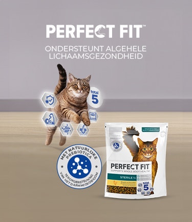 Ontwikkeld in samenwerking met onze dierenartsen en voedingsdeskundigen van het Waltham Petcare Science Institute, bevat elk heerlijk recept van PERFECT FIT™ een unieke formule die de algehele gezondheid van uw kat ondersteunt. En om hun unieke beste zelf elke dag naar voren te brengen, biedt elk smakelijk recept ook aanvullende gezondheidsvoordelen, specifiek afgestemd op hun leeftijd of levensstijl. PERFECT FIT™ combineert 5 voordelen die 5 van de meest voorkomende gezondheidsbehoeften van katten aanpakken in de PERFECT FIT™ Total 5 formule.